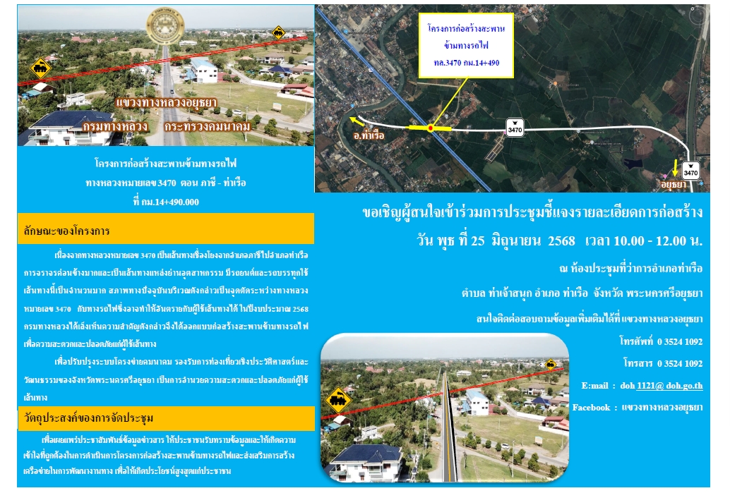 โครงการก่อสร้างสะพานข้ามทางรถไฟบนทางหลวงหมายเลข 3470 สาย ภาชี - ท่าเรือ จังหวัดพระนครศรีอยุธยา ที่ กม.14+490
