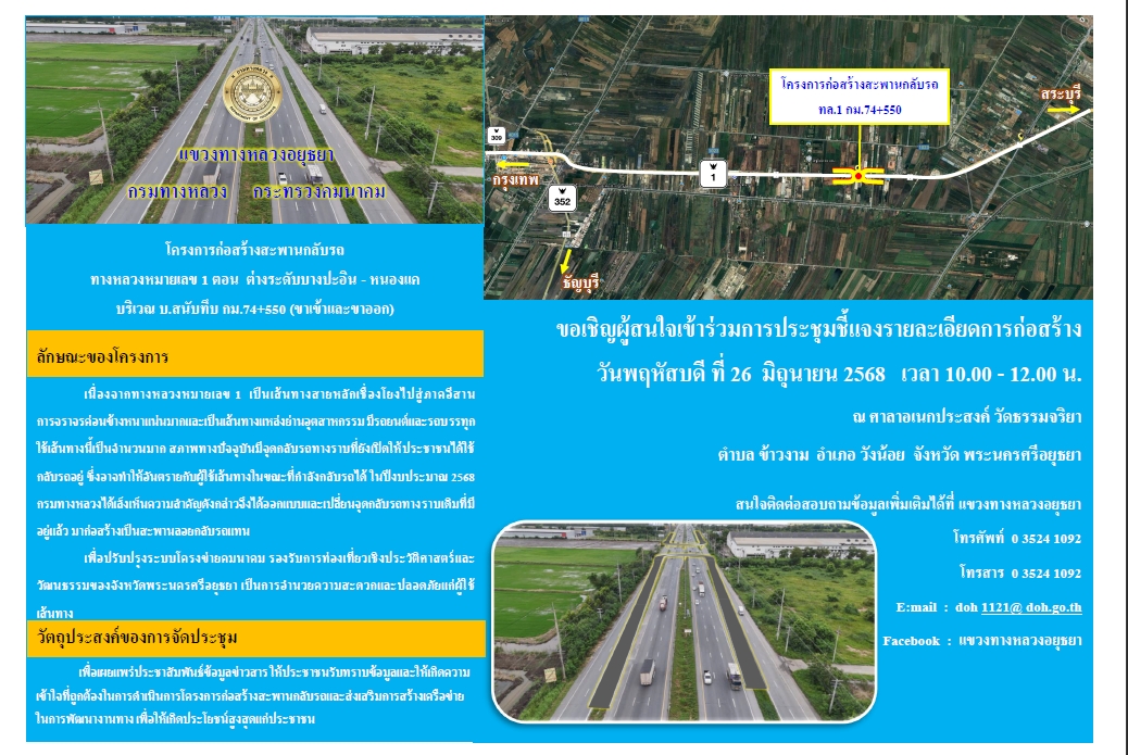 โครงการก่อสร้างสะพานกลับรถบนทางหลวงหมายเลข 1 บริเวณ บ.สนับทึบ (ขาเข้าและขาออก) จังหวัดพระนครศรีอยุธยา ที่ กม.74+550
