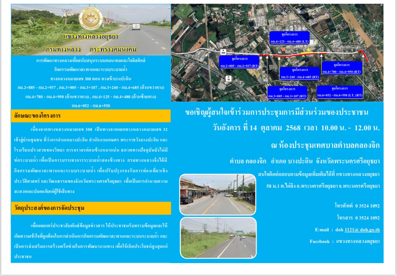 การพัฒนาทางหลวงเพื่อสนับสนุนระบบคมนาคมและโลจิสติกส์กิจกรรมพัฒนาสะพานและระบบระบายน้ำทางหลวงหมายเลข 308 ตอน ทางเข้าบางปะอิน