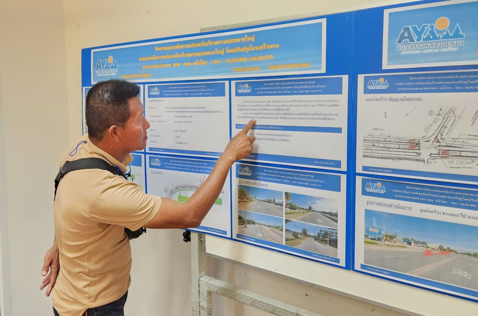 โดยปรับปรุงโครงสร้างทางทางหลวงหมายเลข 3454 ตอน หน้าโคก - เสนา ระหว่าง กม.91+800 - กม.92+715
