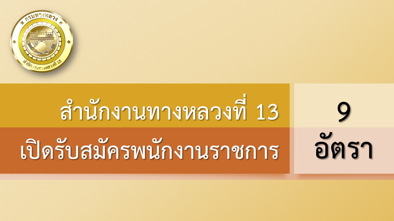 ประกาศกรมทางหลวง เรื่อง รับสมัครบุคคลเพื่อสรรหาและเลือกสรรเป็นพนักงานราชการทั่วไป ตั้งแต่วันที่ 13 - 21 กุมภาพันธ์ 2568 จำนวน 6 ตำแหน่ง รวม 9 อัตรา ดังนี้.-