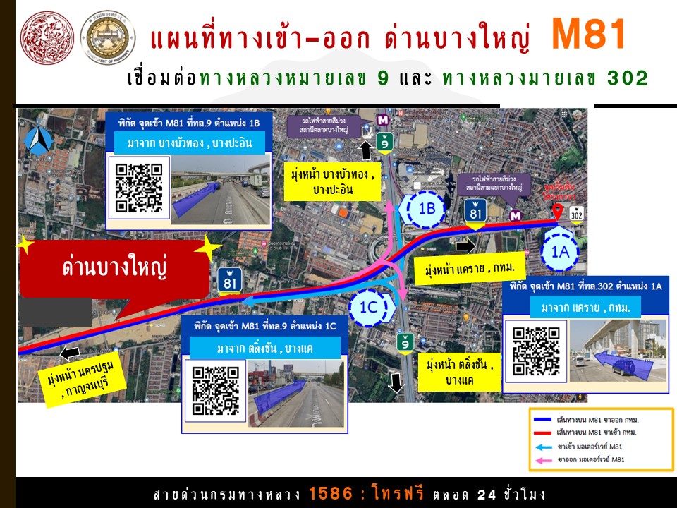 กรมทางหลวงเปิดทดลอง มอเตอร์เวย์ M81 ตลอดสาย จากบางใหญ่-กาญจนบุรี ตั้งแต่ เวลา 00.01 น. ของวันที่ 26 ธ.ค. 67 ถึง เวลา 24.00 น. ของวันที่ 2 ม.ค. 68