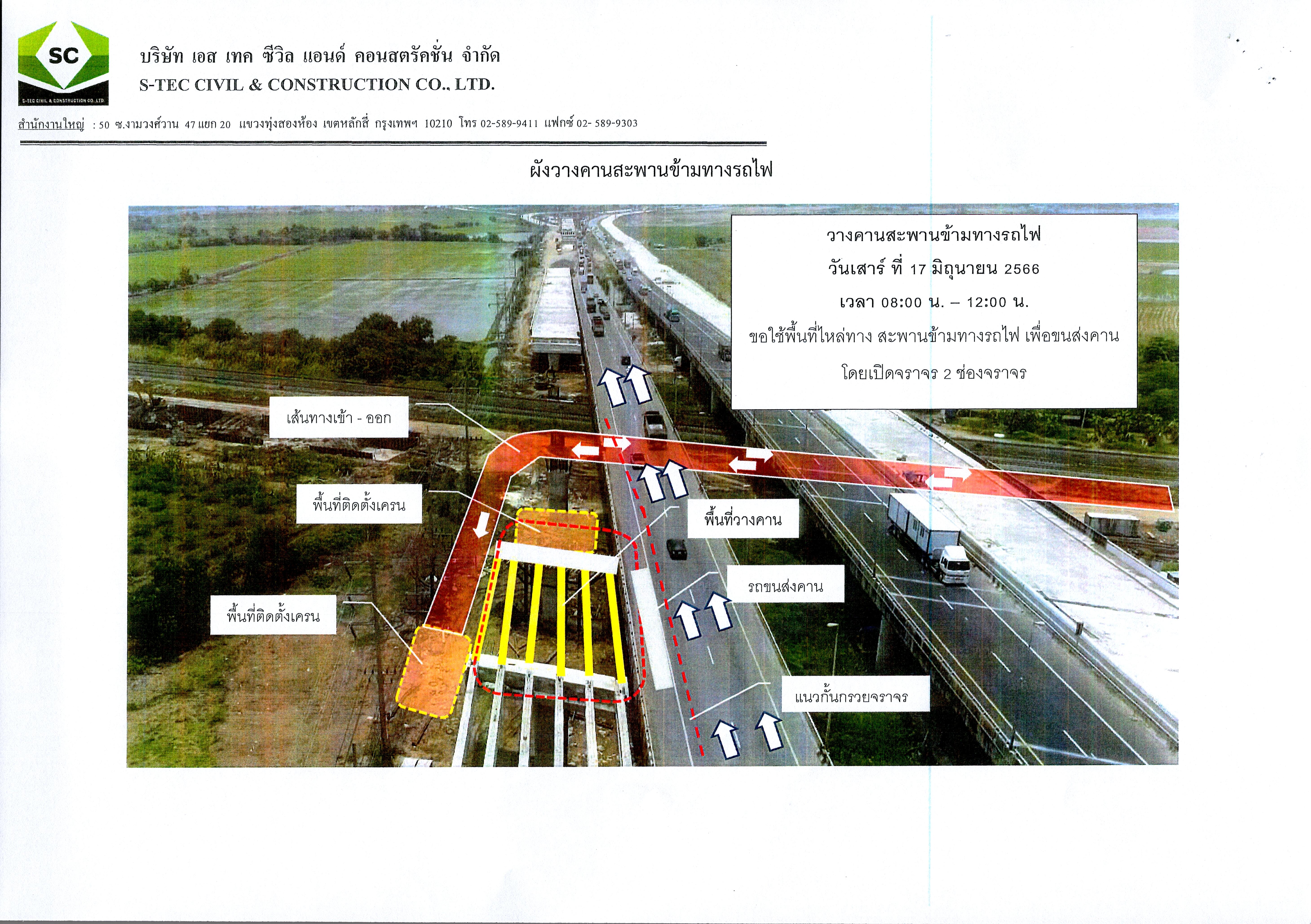 แจ้งประชาสัมพันธ์ปิดช่องจราจรบนสะพานข้ามทางรถไฟ บริเวณ กม.81+911 - กม.82+001 ด้านซ้ายทาง ทางหลวงหมายเลข 3901 สายทางคู่ขนานวงแหวนรอบนอกกรุงเทพฯ ด้านซ้ายทาง ตอน 2 ทางแยกต่างระดับเชียงรากน้อย ต.เชียงรากน้อย อ.บางปะอิน จ.พระนครศรีอยุธยา ในวันที่ 17 - 18 มิถุนายน 2566 เพื่อดำเนินงานวางคานและแก้ไขคาน I - GIRDER สะพานข้ามทางรถไฟ โดยบริษัท เอส เทค ซีวิล แอนด์คอนสตรัคชั่น รายละเอียดดังนี้