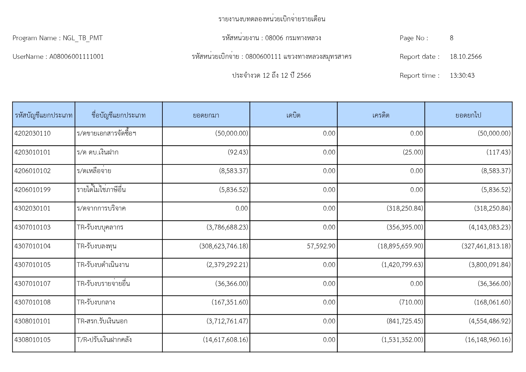 การแสดงรายละเอียดประกอบรายการบัญชีที่สำคัญของงบทดลองประจำเดือนกันยายน 2566 |
