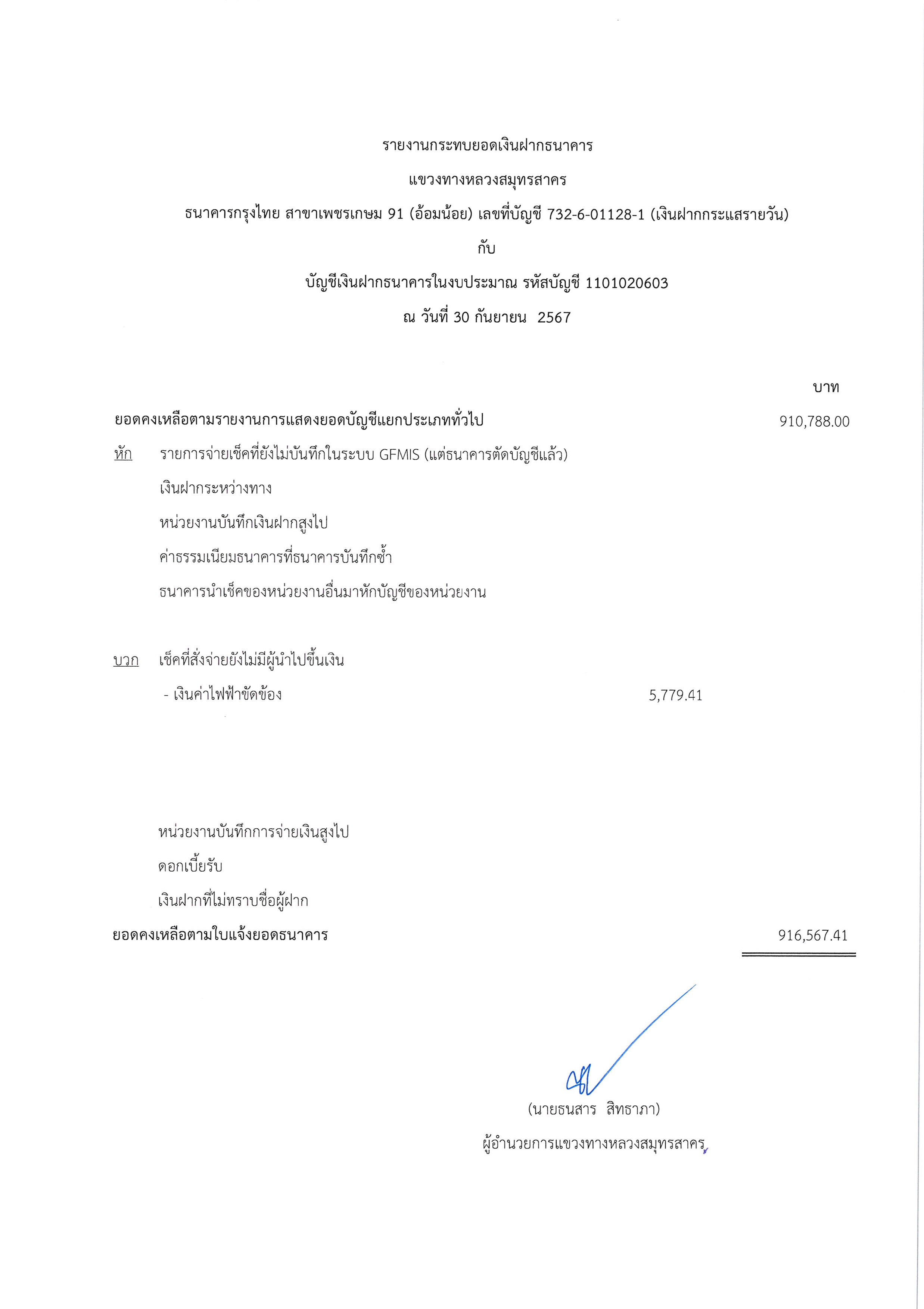 การแสดงรายละเอียดประกอบรายการบัญชีที่สำคัญของงบทดลองประจำเดือนกันยายน 2567 |