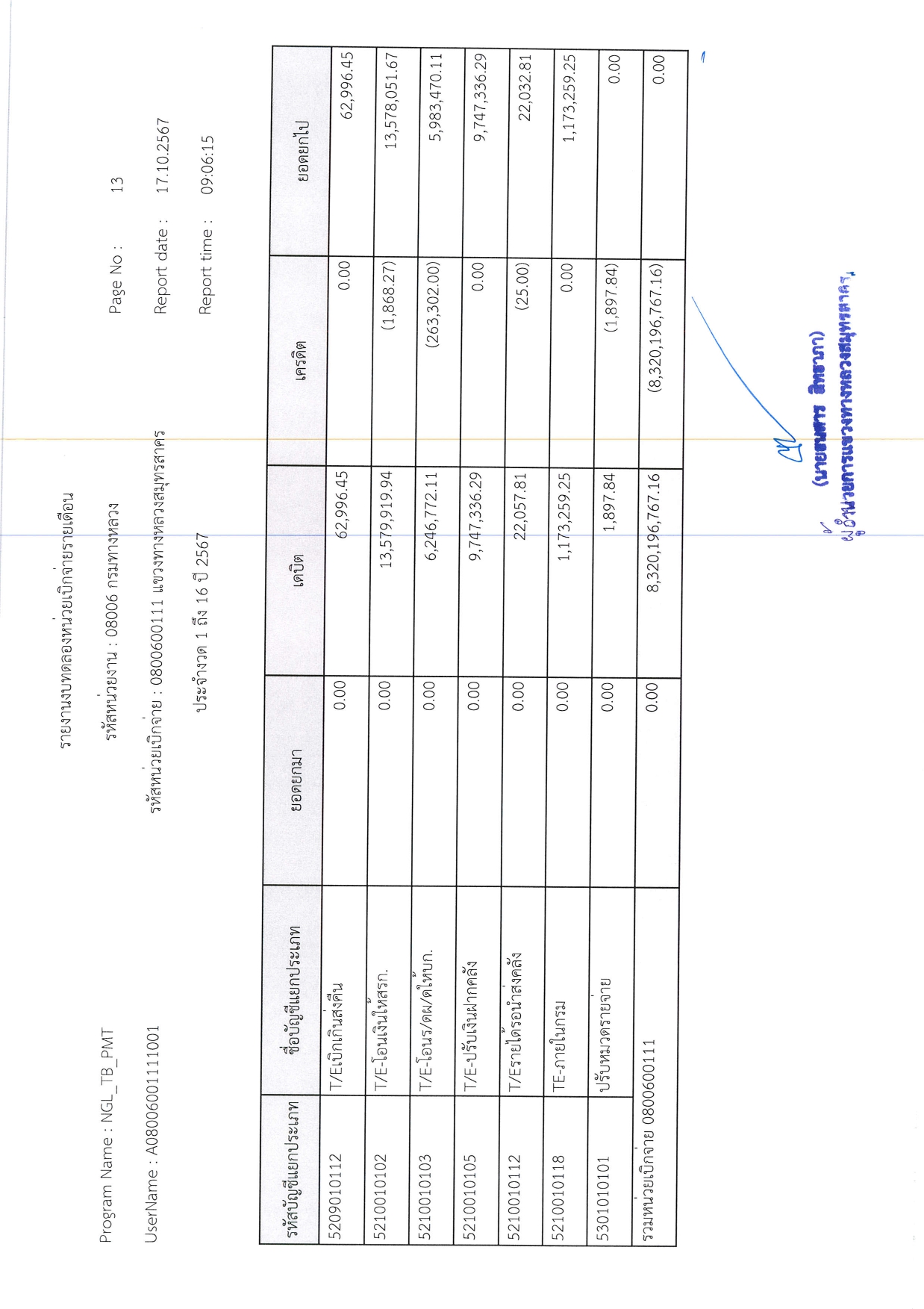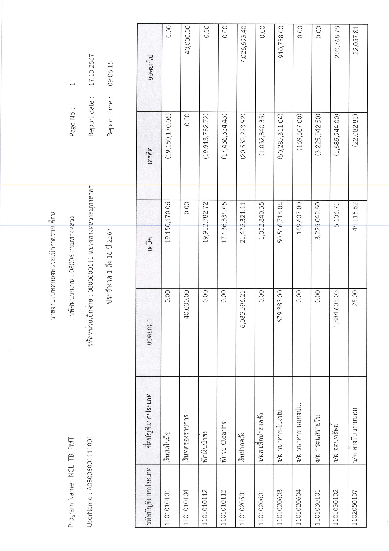 หลักฐานการเปิดเผยงบทดลองประจำเดือน กันยายน 2567