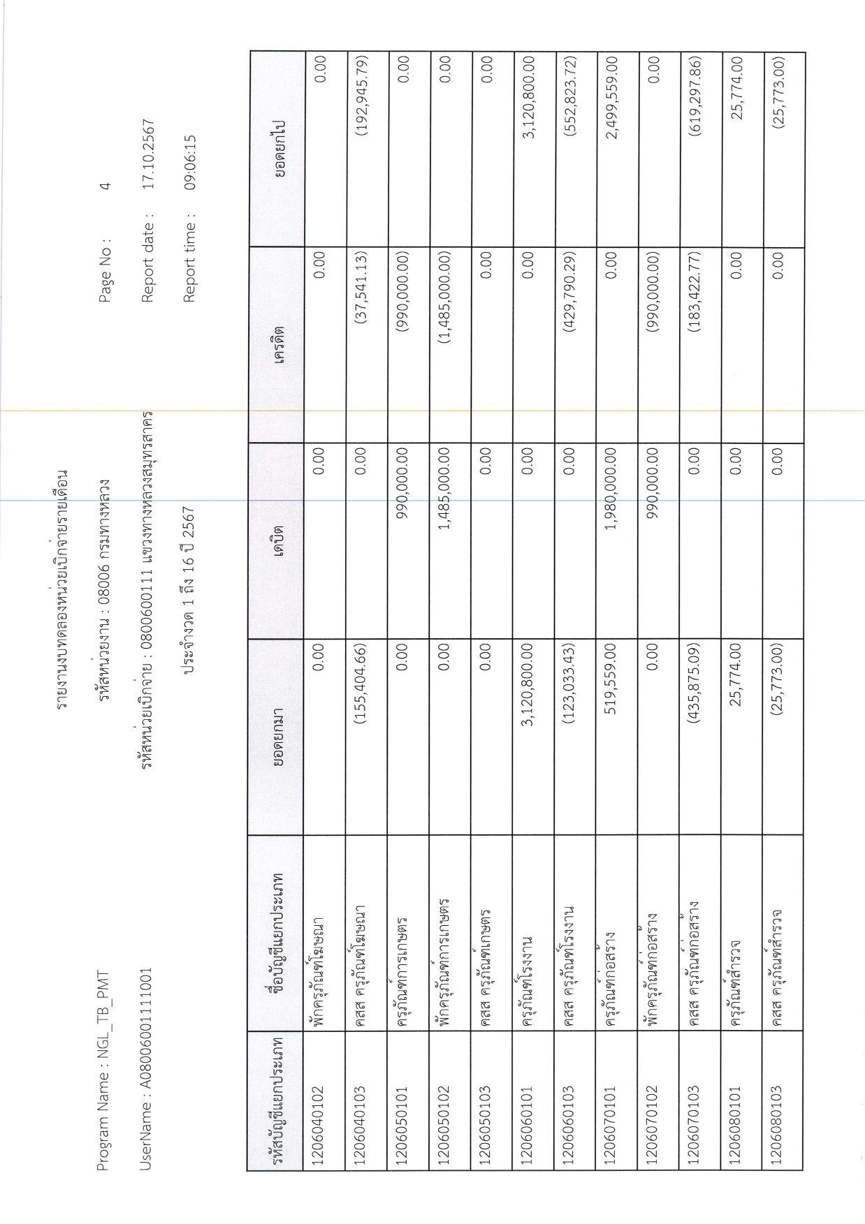 รายงานงบทดลองหน่วยเบิกจ่ายรายเดือน