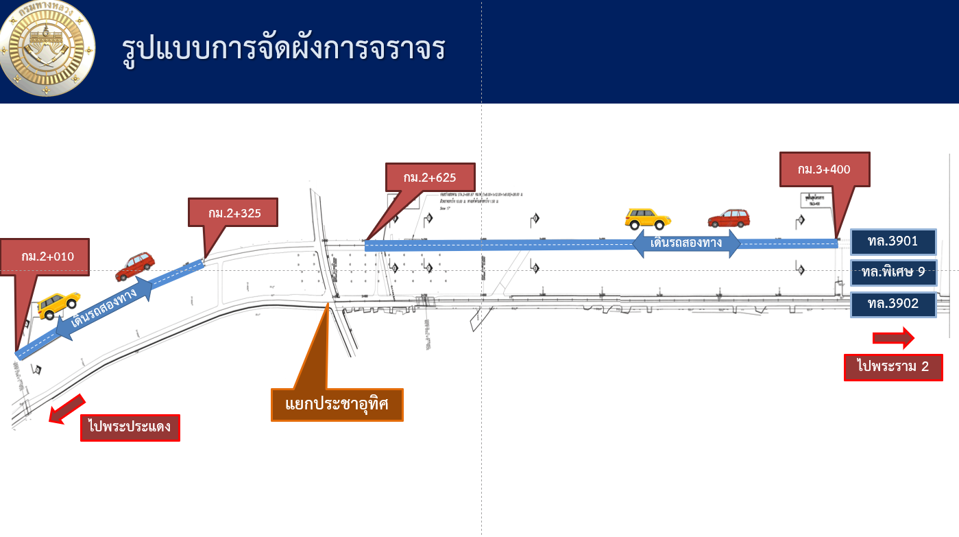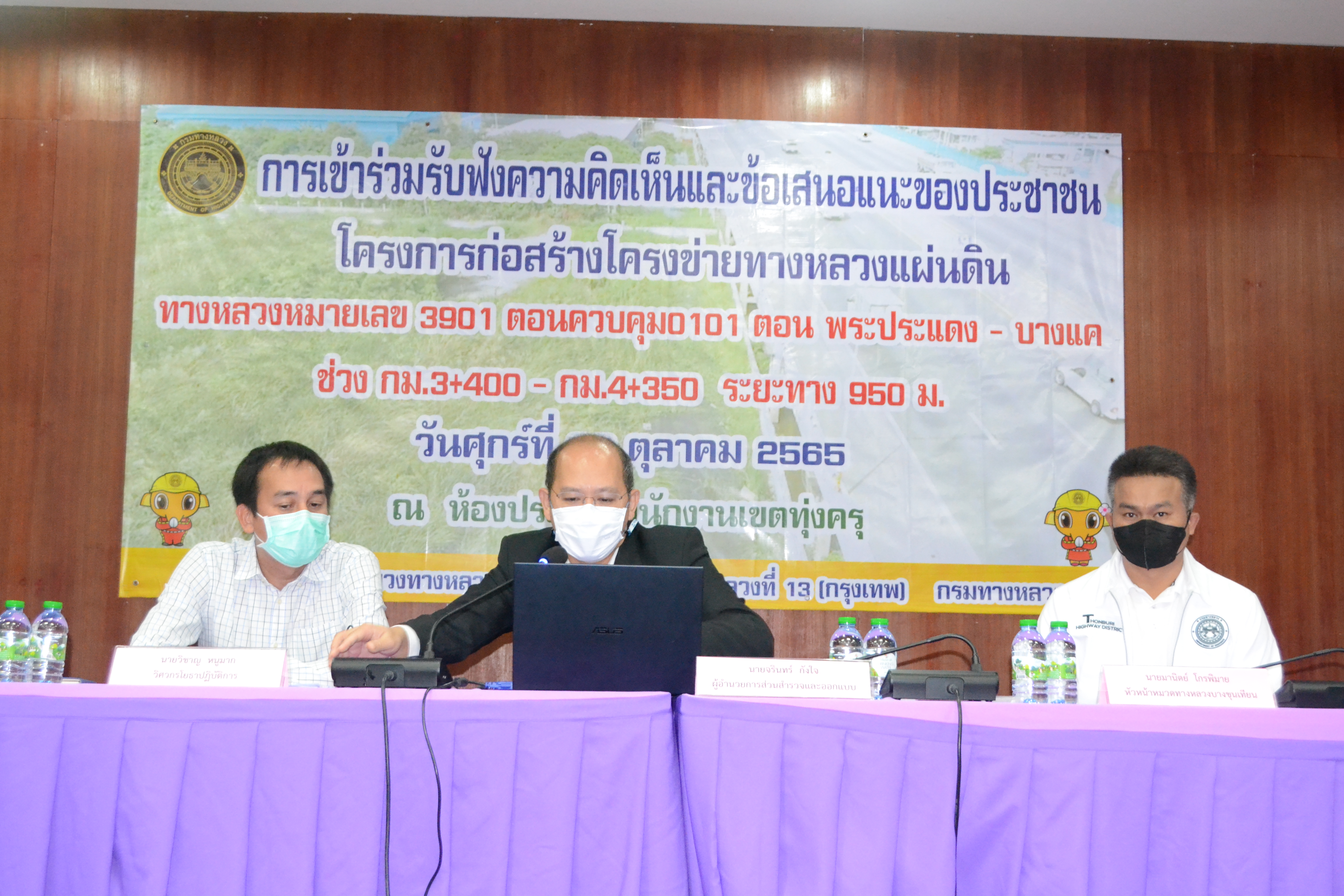 จัดการมีส่วนร่วมและรับฟังความคิดเห็นของประชาชน โครงการก่อสร้างข่ายทางหลวงแผ่นดิน กิจกรรมก่อสร้างทางหลวงพัฒนาพื้นที่ระดับภาพ ทางหลวงหมายเลข 3901 ตอนพระประแดง – บางแค ระหว่าง กม.3+400 – 4+350